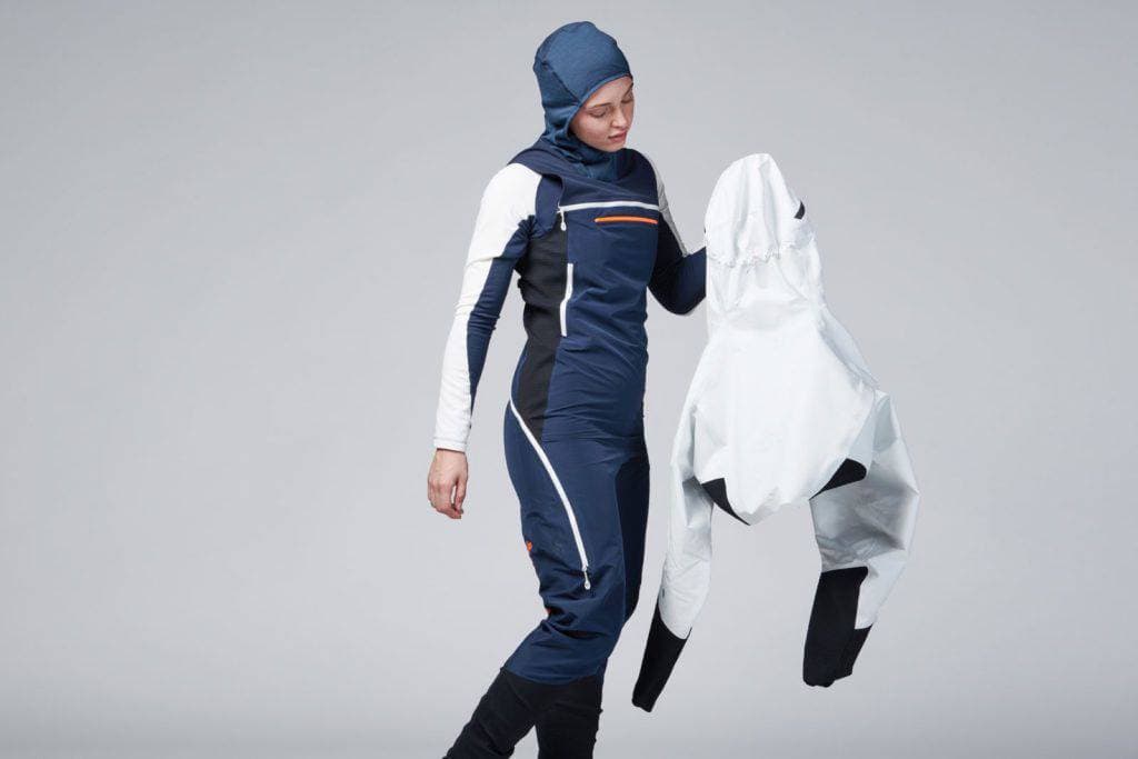 Oltre 155 anni di esperienza hanno reso possibile la creazione dell’innovativo sistema modulare di abbigliamento sportivo per la montagna, che, come concetto generale, rappresenta la perfetta sintesi di abbigliamento, attrezzatura tecnica e calzature. In futuro, questo outfit offrirà agli atleti del Pro Team funzionalità senza compromessi per spostarsi più facilmente ed efficacemente su superfici tecniche di neve, ghiaccio e roccia. Le mute sono state la fonte d’ispirazione per lo sviluppo dei pantaloni Bib Halo Hybrid HS, l’elemento centrale dell’outfit. I pantaloncini con cappuccio offrono assoluta libertà di movimento, protezione dagli agenti atmosferici e una ventilazione ottimale. Su percorsi tecnici di alta montagna, i pantaloncini sono abbinati al pezzo unico Thermo-Baselayer Halo Hybrid ML Onepiece. Se le condizioni atmosferiche lo richiedono, ad esempio a causa di acqua, neve o ghiaccio, la giacca con cappuccio Halo HS complementare trasforma l’outfit in una tuta sportiva da montagna completamente impermeabile.