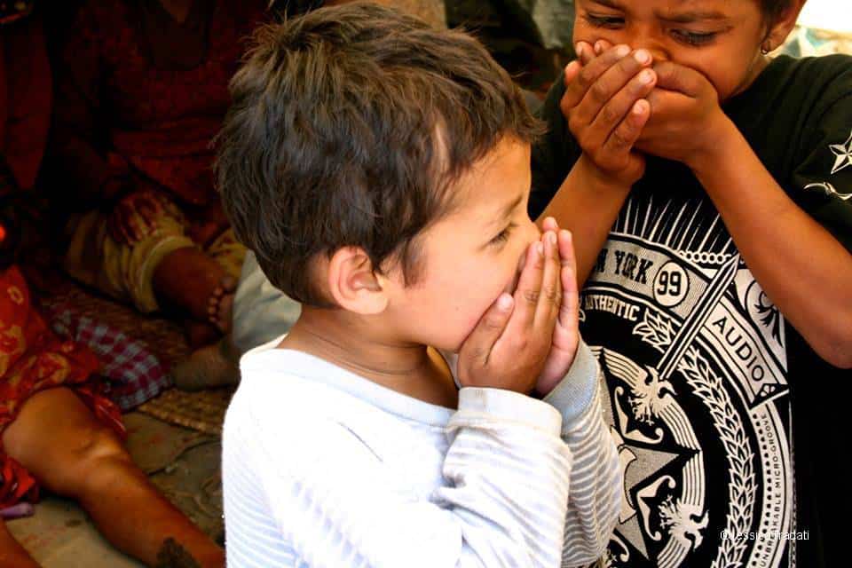 Qui, nella provincia, incontriamo persone di ogni tipo, accomunate dalla tragedia, dall’orgoglio di essere nepalesi, dall’ignoranza delle più elementari regole igieniche e sanitarie. Del resto, già in tempi normali non esistono programmi governativi intensivi in grado di istruire convenientemente la popolazione, figuriamoci in emergenza. Ci troviamo pertanto a dover spiegare nozioni elementari a giovani coppie, anziani spaventati, bambini curiosi, donne inesperte.
