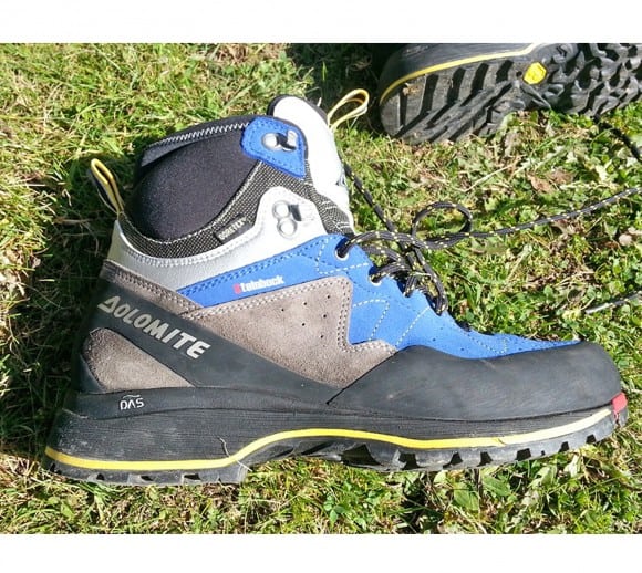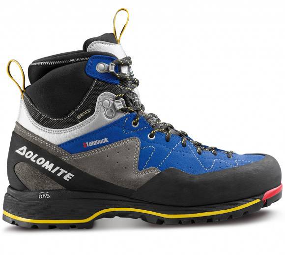 Lo scarponcino Dolomite Steinbock Approach HP GTX riprende la costruzione e la linea del modello precedente. Il modello testato ha un bell'abbinamento di colori: blu elettrico, nero, argento e grigio con inserti gialli e rossi. Membrana impermeabile e traspirante in Gore-Tex, suola in Vibram con punta sostituibile da un calzolaio in caso di usura. Ottima la calzata, veloce e semplice, supportata da un lacciolo posteriore ampio e comodo; eventualmente si può facilitare la calzata anche solo posizionando indice e pollice come calzascarpe. Immediata la sensazione di comfort abbinata ad una piacevole avvolgenza, indice di tecnicità e performance. Il serraggio dei laccetti richiede pazienza nella parte inferiore, le dita di taglia maschile entrano a fatica fra gli incroci dei laccetti per procedere al tensionamento; meglio allentarli partendo dall'alto per ottimizzare la tensione fin dalla punta. Una volta in tensione i laccetti non cedono, si inseriscono nel primo gancio autobloccante e successivamente sull'ultimo gancio per l'esecuzione del nodo. Una pantofola..fascia perfettamente il piede! La linguetta è ben imbottita ed è semplice da posizionare, un lacciolo è presente anche anteriormente per tirare la linguetta e posizionarla al meglio. Punta e tallone ben rinforzati, la fasciatura perimetrale di protezione è ottima per le asperità e rocce taglienti. La membrana interna è aderente e ben assemblata, senza grinze, e continua sotto la soletta (anche se in quella zona non servirebbe). La soletta è semplice e sagomata sul tallone. L'intersuola è morbida, ammortizzantcon un inserto giallo rigido posto subito al di sopra della suola in Vibram. (Stacchini Riccardo)
