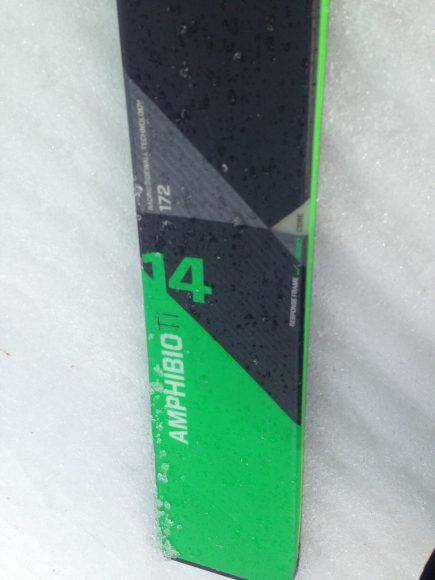 Le aspettative della nuova versione dell'Amphibio 14 Ti sono state pienamente rispettate in occasione dei test pratici sulle piste della Val Senales. La misura testata è la 172cm con una sciancratura di 121-73-104mm e un raggio di soli 15,7m. Lo sci in questione è risultato essere piuttosto dinamico e leggero senza però perdere la dovuta rigidità che permettesse anche una buona stabilità durante tutto il raggio di curvatura. La costruzione innovativa con un "side rocker" frontale permette un'ingresso in curva decisamente facile senza troppe vibrazioni. La stabilità in curva è ottima grazie anche alla lunghezza della lamina interna maggiorata dal "side camber" che offre oltretutto una presa di spigolo ottima. La tecnologia Amphibio 4D si rende efficace nel migliorare anche l'uscita di curva che, supportata dalla sciancratura, permette una notevole dinamicità nelle curve a raggio ampio. La regolazione dell'attacco montato per il test, ELX 11, è stata facile e intuitiva grazie alle le vette azionabili direttamente a mani nude senza il bisogno di attrezzi per raggiungere scomode viti.