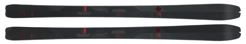 Osservando la superficie degli sci Elan Ibex 84 Carbon XLT, si nota subito la caratteristica medio- larga della spatola, la serigrafia ruvida nera e grigio scura, che richiama la forma di piccole scaglie di pelle di rettile. Appena sotto la spatola e per metà coda presenta anche delle porzioni lisce e assieme alla tecnologia “Bridge” ( ovvero una geometria particolare che divide a metà gli attrezzi, dalla punta alla coda tramite una linea in rilievo), ricorda appunto, un “ponte” che collega le due superfici laterali degli sci.