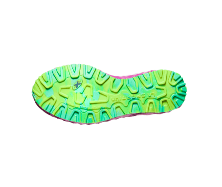grip eccellente. L’altezza della gomma permette al piede di essere vicino alla terra regalano alla trail runner una esperienza autentica e performativa anche in caso di terreni bagnati.