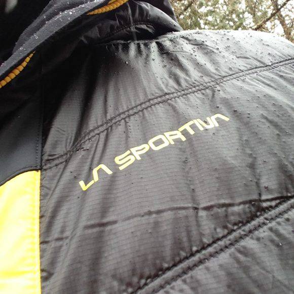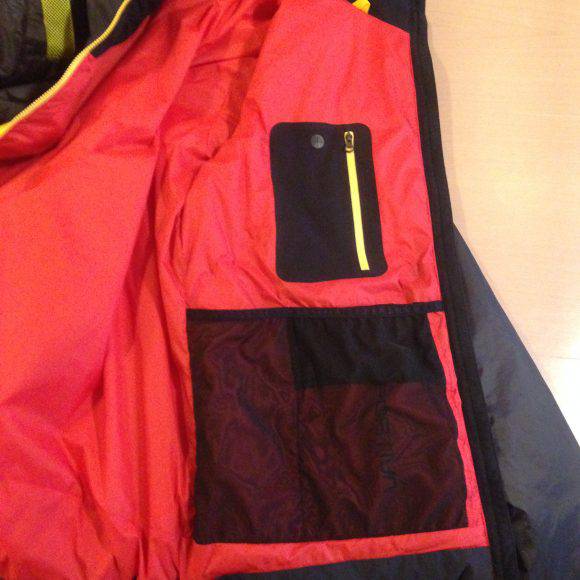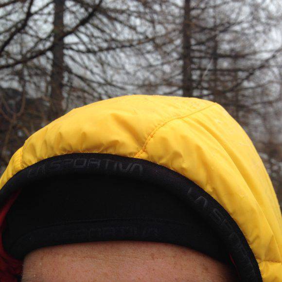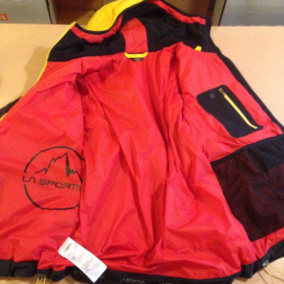 La Quake Jacket de La Sportiva è un capo invernale, un terzo strato compatto ma dall’alta capacità di isolamento termico. Il modello preso in esame è color nero lucido con inserti in giallo e la fodera interna rossa. Ha tre cerniere: due laterali per le tasche e una integrale posta frontalmente che termina a chiudere un alto colletto così da offrire buona protezione alla porzione inferiore del volto. Il cappuccio e le due maniche hanno le estremità rivestite da materiale differente rispetto al resto del capo: il polsino è realizzato in morbido tessuto elasticizzato che resta più aderente al polso, mentre il cappuccio, in corrispondenza dell’apertura sulla fronte, ha un rivestimento interno in materiale simile al neoprene che evita fastidiosi movimenti del cappuccio durante l’attività. Internamente la fodera è corredata di due tasche: una più piccola con chiusura a zip destinata allo smartphone con un’apertura per il passaggio degli auricolari e, inferiormente a questa, una tasca più grande priva di cerniera che consente la facile reperibilità di oggetti come la radio o i guanti rimossi per veloci operazioni sul campo. La Quake Jacket è accessoriata di cordini a strozzo che permettono di personalizzarne la vestibilità: due sono disposti a livello del girovita, uno per lato, e uno nel cappuccio. L’interno del girovita presenta un rivestimento in materiale gommoso che, in associazione alla regolazione resa possibile dai cordini laterali, garantisce l’isolamento del capo. Il cordino collocato nel cappuccio permette una regolazione ottimale dello stesso così da consentire al contempo una buona visibilità e protezione dal freddo e dal vento restando ben adeso al viso. Il cappuccio e le tasche presentano un rivestimento interno morbido capace di trasmettere una piacevole sensazione di calore sin dal primo contatto.