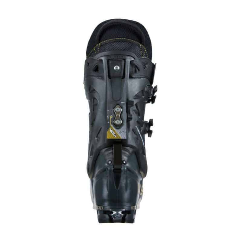 10. Vertebra Technology™: vertebra brevettata in Grilamid® caricato carbonio. Costituisce parte strutturale del gambetto e garantisce massima sicurezza e precisione in “Downhill mode” scaricando la potenza dalla gamba allo scafo e allo sci per discese decise e potenti