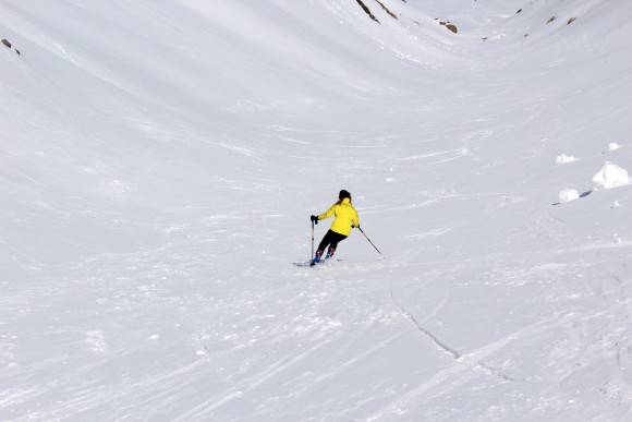 Mammut Kira colpisce per i colori pastello, netti e decisamente moderni. Un bel salto per il marchio Mammut, rimasto fedele nel tempo a una scala cromatica decisamente meno accattivante. La qualità del materiale, garantito da GORE-TEX®, non si discute e la combinazione del tessuto a 2,5 strati (addome, zona lombare, sotto braccia e cappuccio) con uno a 3 strati (sovraspalle, braccia, dorso), comunica immediatamente l'alto valore tecnico e prestativo del capo. La lunga zip anteriore dispone di una patella sottostante, antivento, ed è protetta da una gommatura superiore; tutte le altre cerniere, tasche laterali e ascellari, con dentatura più fine, sono anch'esse impermeabilizzate. Non sono presenti tasche interne, ne' napoleonica. La coulisse in vita si regola facilmente con tiranti elastici e sistemi di bloccaggio a pressione. L'indossaggio è rapido, e la chiusura della cerniera anteriore, scorrevole e precisa, richiede solo un po' di attenzione nel dislocare i cursori esattamente a fondo corsa, per poter inserire efficacemente la guida metallica dell'altro lembo. La giacca risulta subito molto confortevole, seguendo naturalmente i movimenti del busto e delle braccia: il taglio sciancrato è molto gradevole. I polsini richiudibili con lembo in tessuto e velcro, appaiono ben tagliati e risultano pratici da utilizzare. Il cappuccio avvolge bene il capo, lasciando ampio campo visivo, grazie alla efficace regolazione a tre punti, con elastico e bloccaggi a pressione. Si ha la precisa idea di un guscio molto bello e portabile in ogni situazione, ma anche capace di massima protezione dagli agenti atmosferici in alta quota e in situazioni di forte maltempo. (Jessica Tradati)