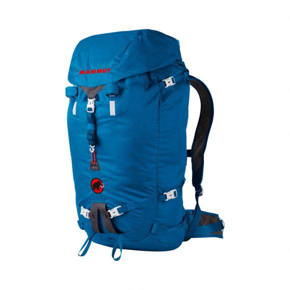 Ho testato lo zaino Mammut Trion Light 38+ in diversi ambiti: trekking, sci alpinismo e tempo libero. Eccezionale la leggerezza nonostante le dimensioni. Un 38 litri che può aumentare la capienza al bisogno e che presenta tanti dettagli utili per trasformarsi nello zaino ottimale in funzione della necessità. Il materile utilizzato è Cordura Dobby Ripstop per la parte leggera, mentre la base azzurra ha una grammatura superiore per evitare l'usura nelle parti maggiormente esposte. Il cappuccio superiore è estraibile mediante 3 piccoli ganci a doppio uncino: estraendo il cappuccio lo zaino diventa perfetto per l'arrampicata in quanto la testa è libera di muoversi in tutte le direzioni, soprattutto verso il retro. In questo caso la chiusura dello zaino aviene tramite il rotolamento della parte superiore, nello stile delle sacche stagne. Per favorire i movimenti durante l'arrampicata è utilissima la possibilità di estrarre i 2 supporti in alluminio presenti verticalmente sul dorso e orizzontalmente sulla parte interna superiore. Lo zaino non è comunque stagno: il tessuto è spalmato internamente ma le cuciture non sono termonastrate. Ottima la possibilità di sganciare e riposizionare la cinghia principale di chiusura a clip, sempre con lo stesso sistema a uncino presente sul cappuccio. La cinghia può quindi essere agganciata alla base o al centro dello zaino, in funzione dalla dimensione del carico, oppure superiormente per mantenere in sede la corda da arrampicata. La tascona frontale esterna è comoda per il materiale di auto-soccorso in ambiente innevato, per le pelli oppure per materiale generico di rapido utilizzo. Ottimi e funzionali i portamateriali esterni: i 2 porta bastoncini e porta piccozze sono essenziali ma ben strutturati. Il porta sci laterale invece mi solleva qualche dubbio sulla integrità del tessuto a contatto con le lamine dello sci, a lungo andare il tessuto estremamente leggero potrebbe tagliarsi. Le 4 cinghie laterali di compressione svolgono inoltre egregiamente la possibilità di comprimere lo zaino quando parzialmente riempito. La grande sacca interna può contenere il sistema di idratazione, anche di grandi dimensioni fino a 3 litri. Il dorso dello zaino è ben imbottito con materiale cavo e traspirante: durante il trasporto di circa 10 kg. la comodità è sempre stata alta. La cinta e le bretelle sono invece sottili e poco imbottite, questa è l'unica pecca riscontrata in caso di carico pesante. Il peso va a gravare su spalle e fianchi e a lungo andare la pressione sensibilizza le parti sotto pressione.