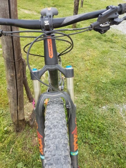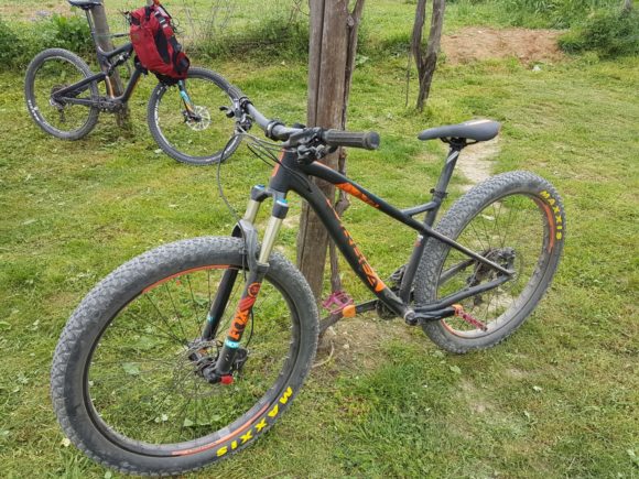 Il percorso fissato per testare l'ORBEA LOKI 27 H10 è il famosissimo anello della 24h di Finale Ligure. Regoliamo la sella tramite il sistema AAA, mentre il vero mistero (per noi) è la scelta della pressione delle gomme MAXXIS Chronicle 3.0" 60 TPI TLR Exo; decidiamo di mantenerci con una pressione media ed iniziamo a pedalare sul pratone iniziale. La vera sorpresa sono proprio gli pneumatici che nonostante le considerevoli dimensioni, consentono alla bici di avanzare agilmente. Inizia la salita del Bric dei Corvi", il percorso si fa duro e il carro posteriore veramente compatto regala una buona trazione, la posizione in sella è equilibrata non troppo race o esageratamente enduro; la salita sta per finire e anche i tratti più tecnici sono stati "mangiati" senza problemi da questa bike dalla personalità spiccata da ferma ma che non tradisce anche in azione. Dopo la salita ci siamo... ci tuffiamo nel famoso "toboga", discesa del percorso della 24h. La sella si abbassa con una operazione non velocissima ma con precisione grazie al reggisella Orbea Digit 31.6x400mm, la forcella Fox 32 Float Performance 120 FIT4 3-Position QR15x110 Boost lavora a dovere. La discesa viene aggredita senza timori dall'ORBEA LOKI 27 H10, le gomme comunicano sicurezza sulle numerose curve in appoggio di questo tratto e il divertimento è assicurato. Non siamo ancora annoiati da questa bike e decidiamo di metterla alla frusta sulla discesa della Briga molto più tecnica e cattiva: regoliamo la pressione delle MAXXIS Chronicle 3.0" 60 TPI TLR Exo abbassandola intorno 1.2/1.3 e affrontiamo la discesa e anche in questa situazione si comporta in modo egregio sorprendendo per la sua capacità sopratutto del posteriore nel passare sulle impegnative rocce regalando tanto tanto divertimento e facendoci scordare di essere in sella ad una front!