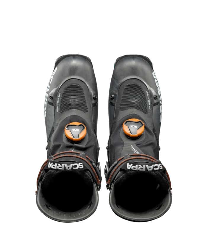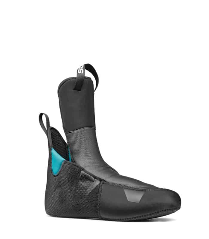 La scarpetta interna del Alien 1.0 carbon di SCARPA sembra sia stata tagliata posteriormente, solamente la linguetta anteriore da appoggio alla tibia. Mentre per il polpaccio un inserto morbido, nella parte interna posteriore del gambetto, funge da appoggio. Minimale ma efficace. È possibile termoformare la scarpetta per renderla ancor più adatta al proprio piede e ridurre al minimo i punti di pressione.