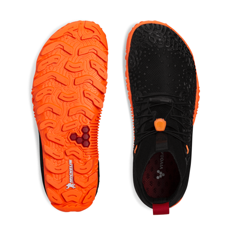 Lo Swimrun è una disciplina in cui la suola di una calzatura gioca un ruolo da protagonista. A differenza di altri sport praticati su un solo terreno, richiede un design del battistrada che offra le massime prestazioni su diverse superfici, sia asciutte - asfalto, pista, sabbia - sia bagnate. Ecco perché la suola, co-progettata da Michelin per Vivobarefoot, grazie alla sua mescola "appiccicosa" garantisce alte performance ed eccellente aderenza su superfici a basso attrito in ogni condizioni, bagnate e asciutte.