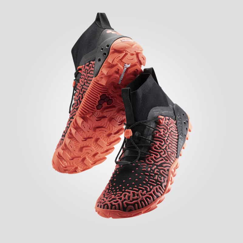 Progettata per l’utilizzo sia a terra che in mare, Vivobarefoot ha sviluppato una tecnologia che imita la struttura della crescita dei coralli marini, per andare a creare una gabbia leggera che dona alla scarpa traspirabilità, eccellente flessibilità senza rinunciare alla protezione del piede e il drenaggio dell'acqua a ogni passo, che sia esso sulla terra o in acqua. Fedele al design minimalista di Vivobarefoot, questa struttura utilizza quantità minime di materiali massimizzando le prestazioni di durabilità, la qualità e la sensazione “a piedi nudi”.