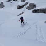 Il team di OUTDOORTEST ha avuto il privilegio di essere ospitato nella splendida Ski Area di Madonna di Campiglio a fine aprile 2025 e, come punto di appoggio, il rifugio “Graffer al Grostè” della SAT (Società Alpinisti Tridentini). Un ottimo punto di riferimento, direttamente sulle piste da sci, ma anche meta ideale e base di partenza per numerosi itinerari scialpinistici e freeride. Il test si è svolto con condizioni meteo variabili, con cielo sereno a tratti, su neve primaverile e trasformata: tratti ancora duri nelle prime ore del mattino e sezioni più morbide e umide nel corso della giornata. Il terzo giorno di test, una leggera nevicata ha portato circa dieci centimetri di neve fresca. Le prove si sono svolte su pendii misti, comprensivi di una simulazione, sia in salita che in discesa, di una gita fuoripista e su alcune sezioni battute, per valutare il comportamento dello sci in condizioni eterogenee.