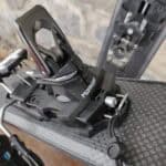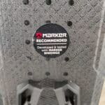 L’attacco testato era un Marker Alpinist, che richiede un po’ di attenzione nell’inserimento del puntale, meno immediato rispetto ai modelli Dynafit. La talloniera va verificata attentamente: è necessario accertarsi che sia abbassata e bloccata tramite una levetta posteriore, azionabile con un cordino.