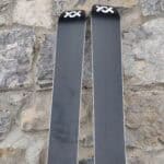 La grafica è essenziale: serigrafia sobria e opaca, con sfumature di nero, grigio, blu spento e beige, che nel complesso restituiscono un'idea di originalità. La soletta è nera, con il logo del produttore Völkl in bianco, ben visibile sulla punta. La costruzione in legno leggero multistrato mantiene una certa solidità senza appesantire troppo lo sci, infatti pesa solamente 1400 gr. circa per sci.